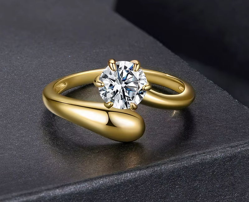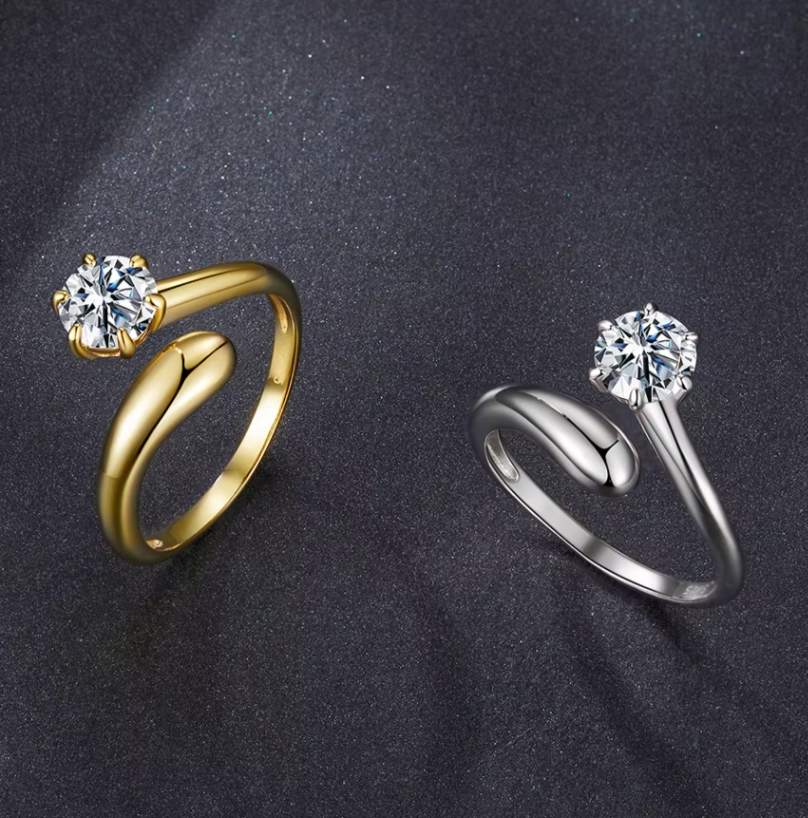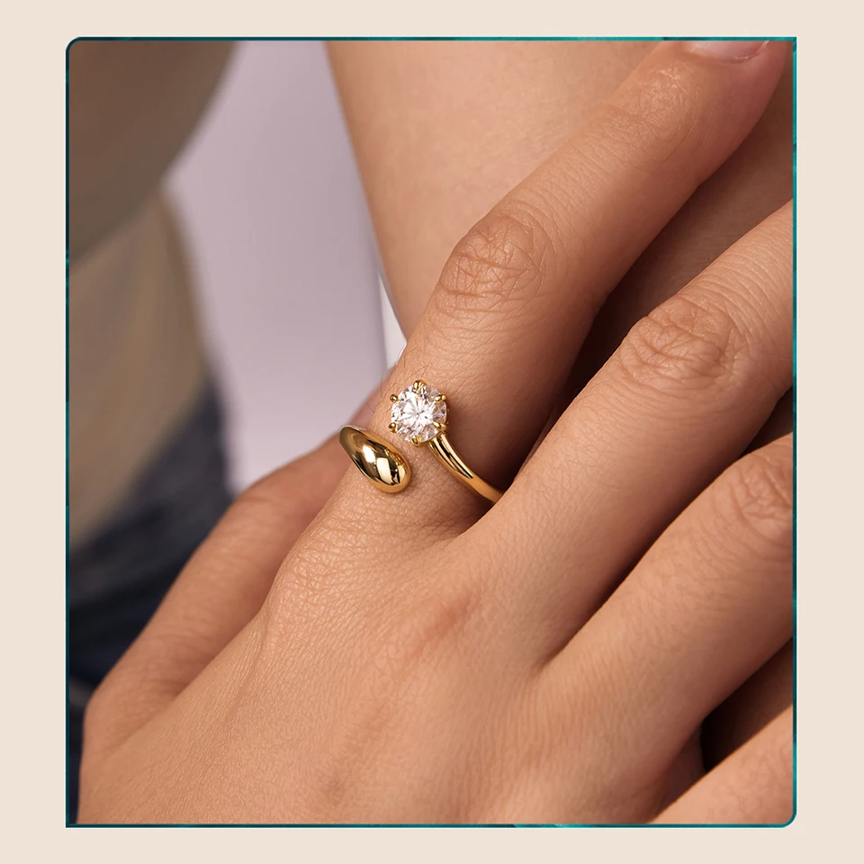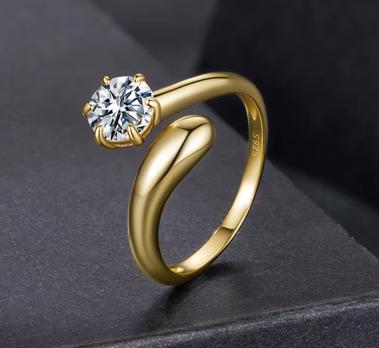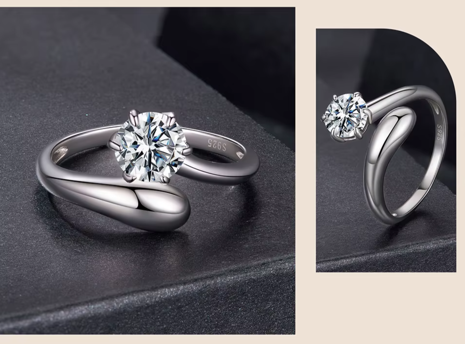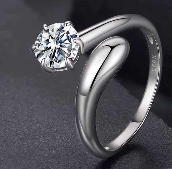 O anel aberto de moissanite brilhante e charmoso é fácil de ajustar para um uso confortável livre e elegante .