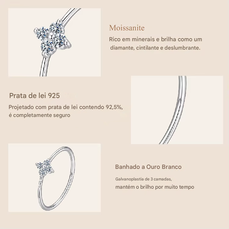 Anel Pâmela em prata 925 e Moissanite, perfeito! Porque luxo e beleza aqui não custam caro.
