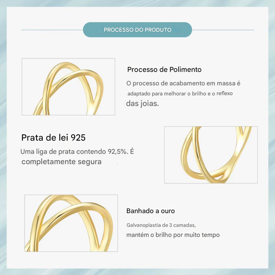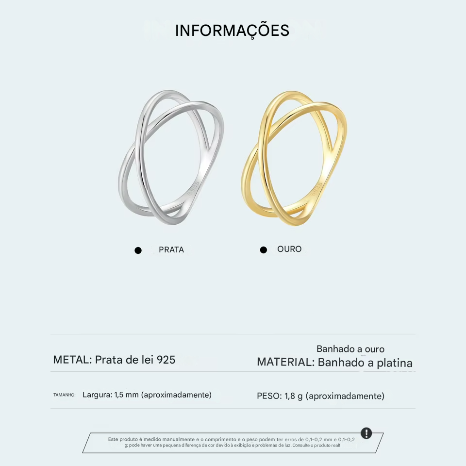 Anel Rafaela em prata 925 e banho de ouro branco/amarelo, atemporal e muito estiloso!