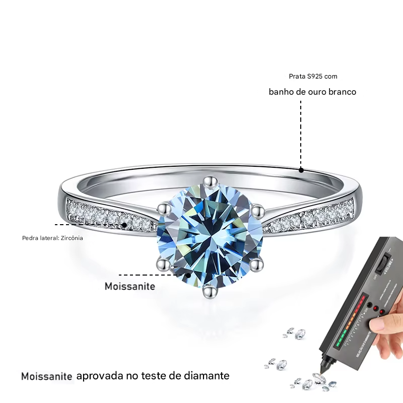 Anel Vênus em prata 925, moissanite e Zircônias de alta qualidade