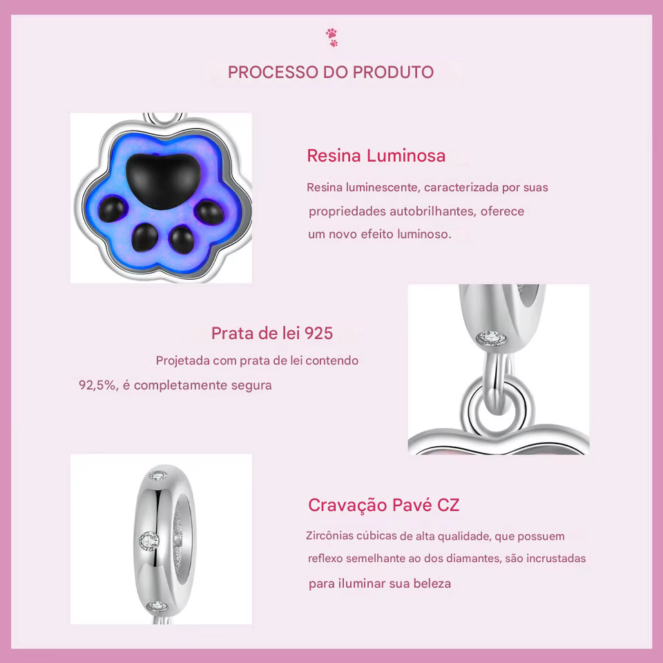 Berloque Cat Nina em prata 925, resina luminosa e Zircônias traduzidas em charme e delicadeza de uma linda gatinha!