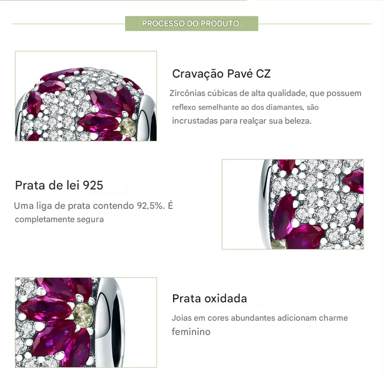 Berloque Flower coleção Nature em prata 925 e cravejado lindamente com Zircônias de alta qualidade.