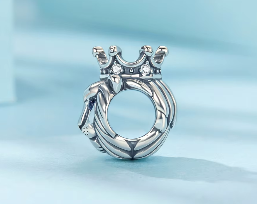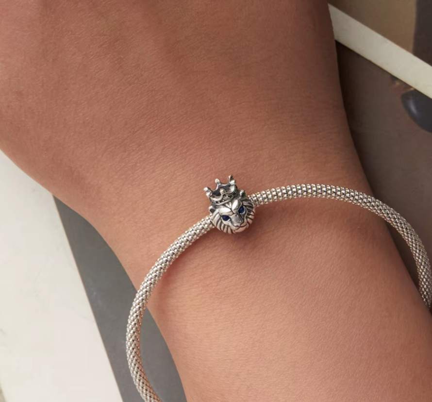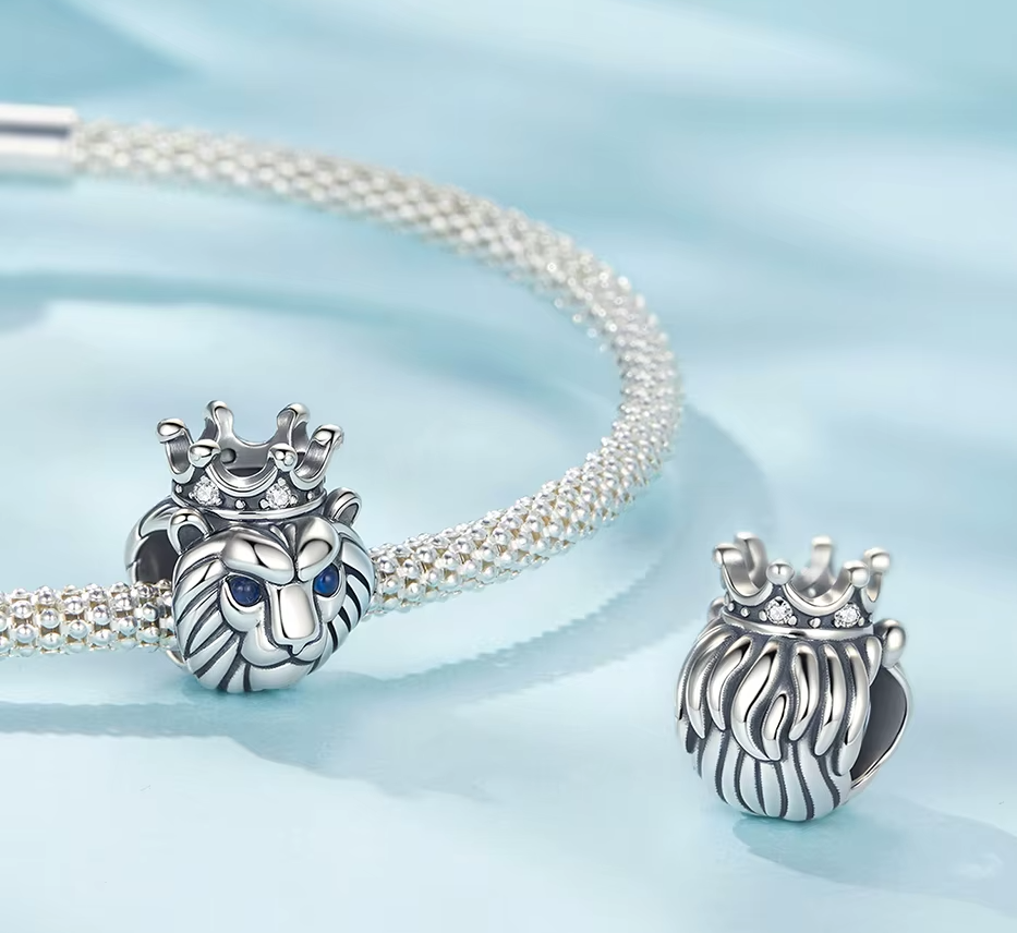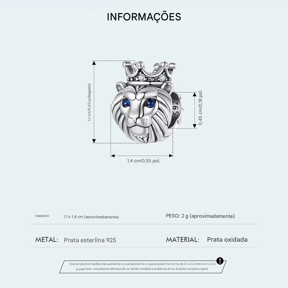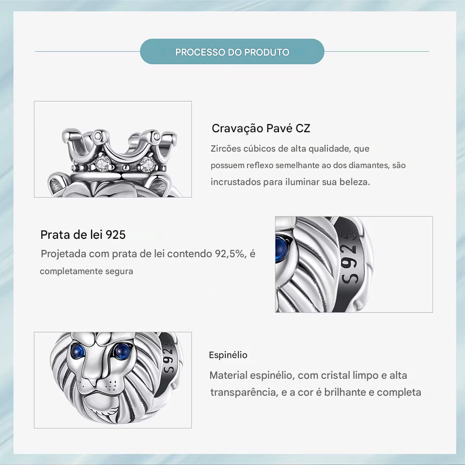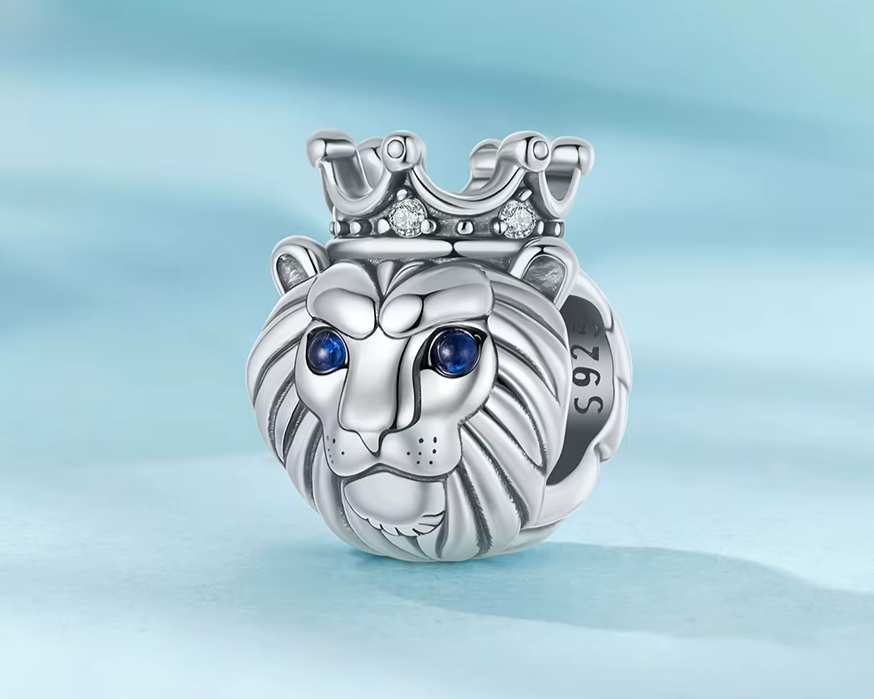 Berloque Leão de Coroa em prata 925 e Zircônias de alta qualidade e Espinélio, em uma joia que representa força e espiritualidade.