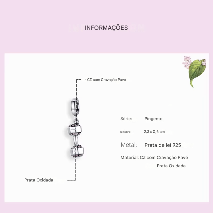 Berloque Live Fit em prata 925 e Zircônias de alta qualidade, você merece essa perfeição!