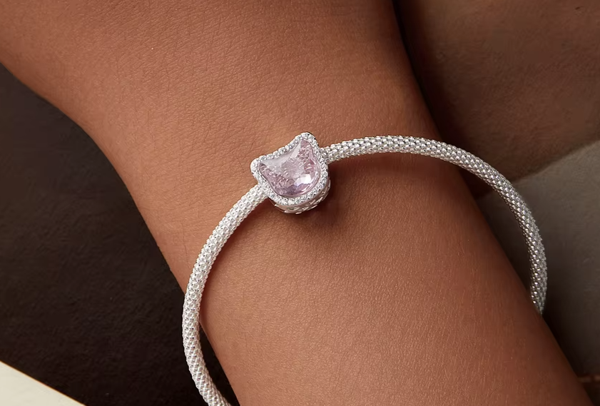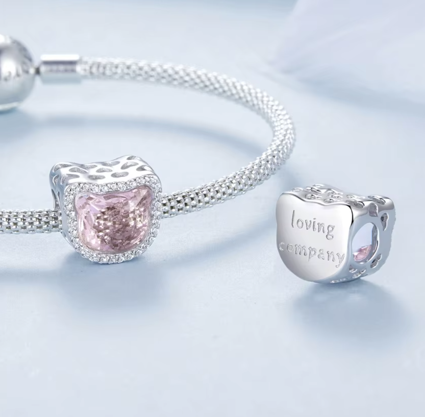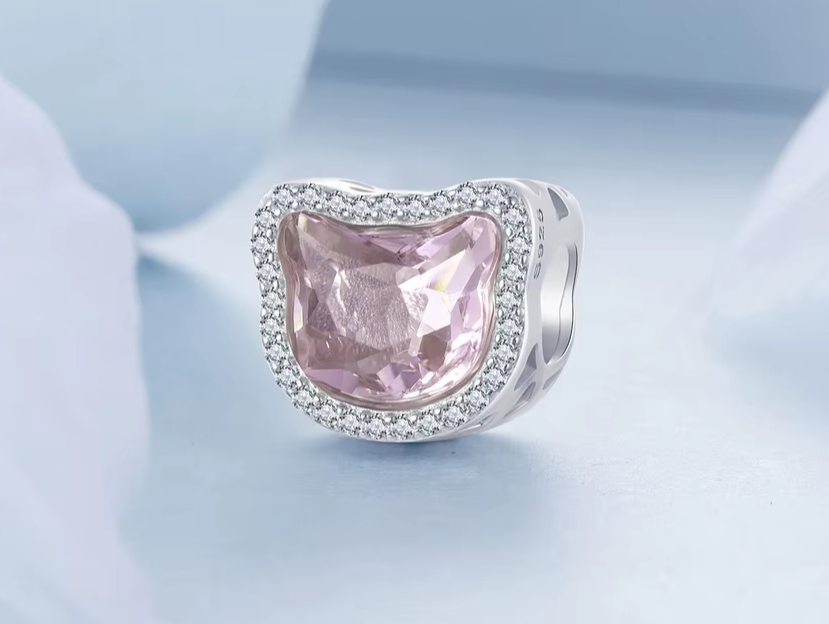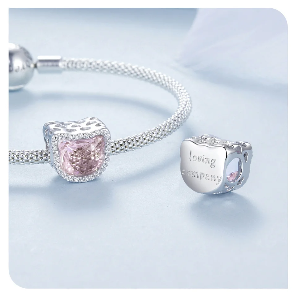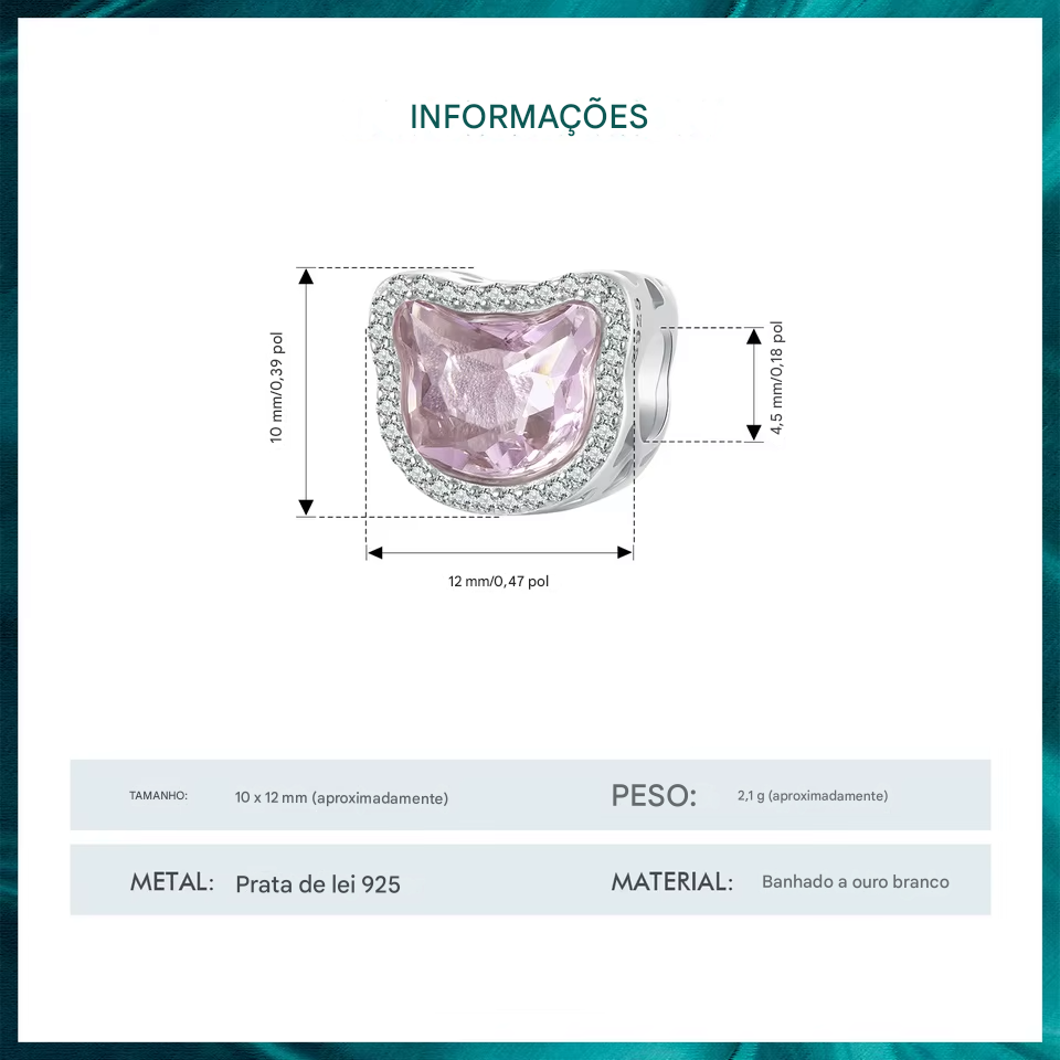 Berloque Pink Kitty Encantos uma perfeição em prata 925, Murano e zircônias lapidadas cuidadosamente.