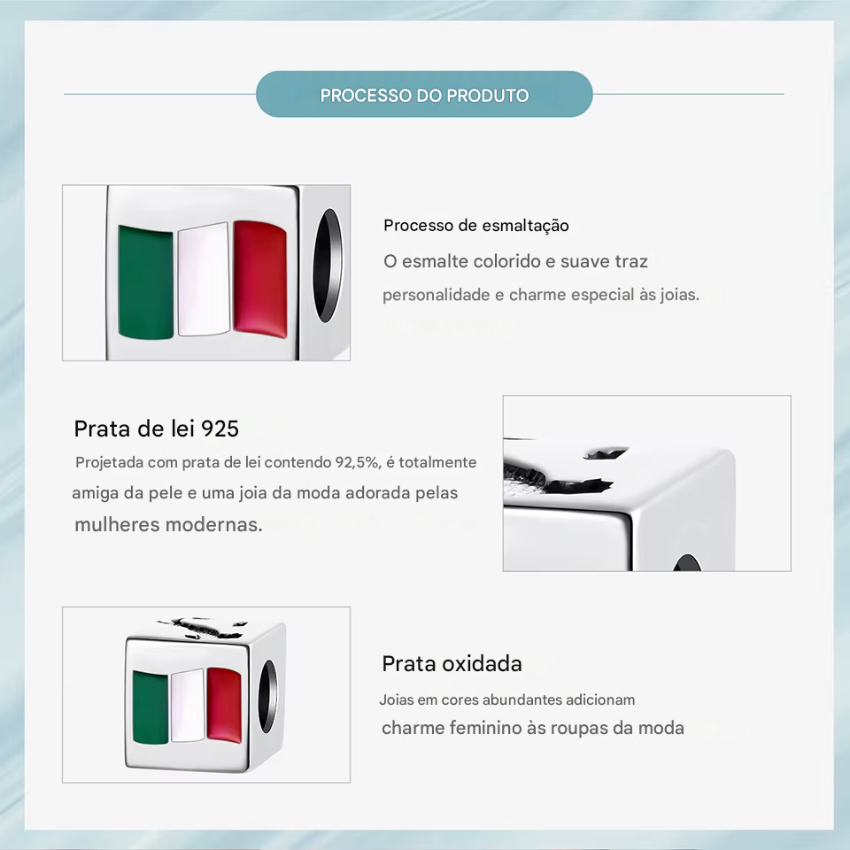 Berloque Square da coleção viagem em prata 925 e esmaltação de alta qualidade para eternizar memórias de um viagens inesquecíveis!