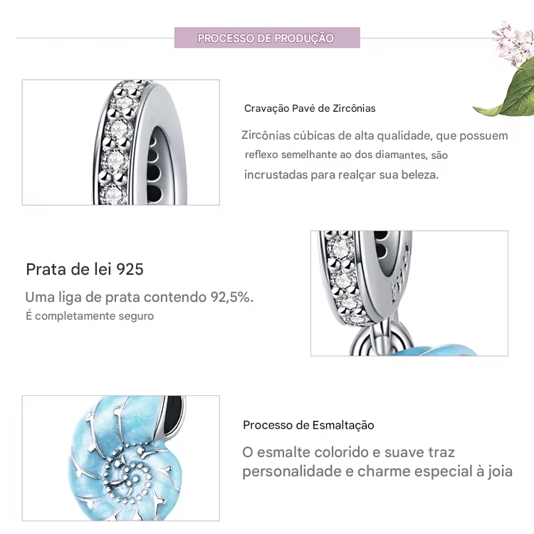 Berloque Dye Coleção Mares, belíssimo em Prata 925 e esmaltação.