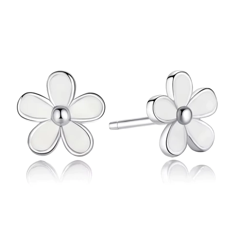 Brinco Diandra margarida da prata esterlina 925 adornada com esmalte branco dando-lhes uma simplicidade doce que seja perfeita!
