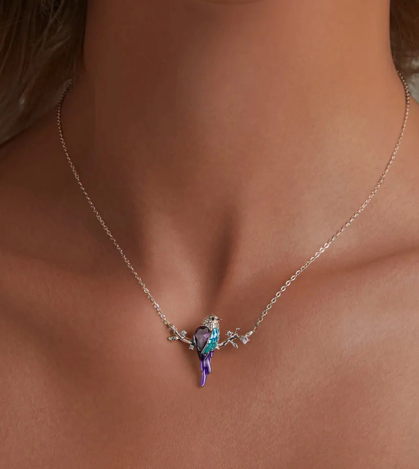 Design tridimensional com pedras de zircônia roxa em forma de curva, mostram um estilo florestal de luxo leve único, exalando brilho requintado.