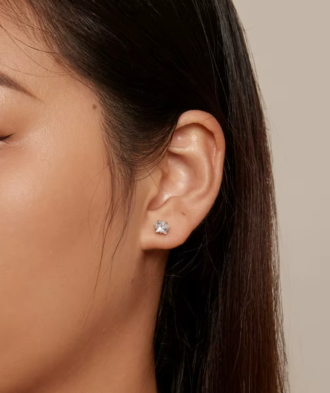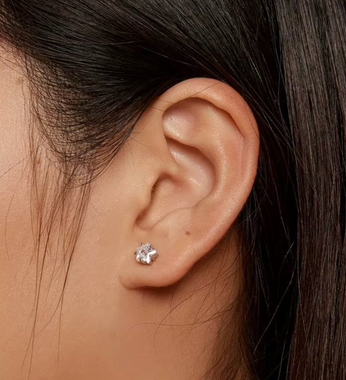 Brinco Sophia em prata 925 e Zircônias de alta qualidade com tarraxa confort, ideal para uso diário e confortável para dormir.