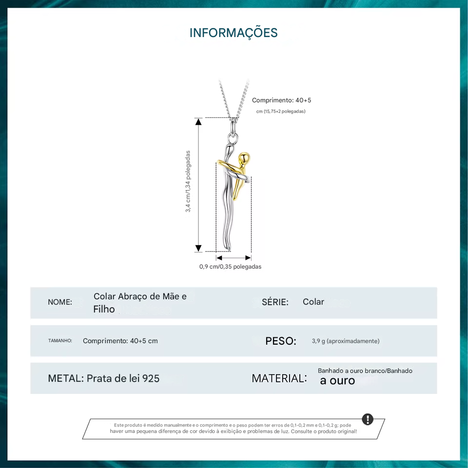 Colar e pingente Abraço de Mãe e filho uma peça que remete carinho, amor e ternura.