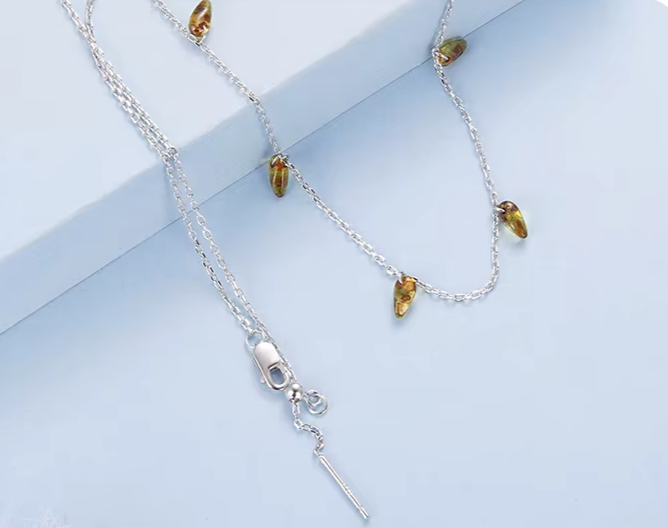 Colar Nerfertite em prata 925 e conta de vidro belíssimas, a corrente fininha, muito delicada e a cor dessas conta fazem toda diferença no seu Look!