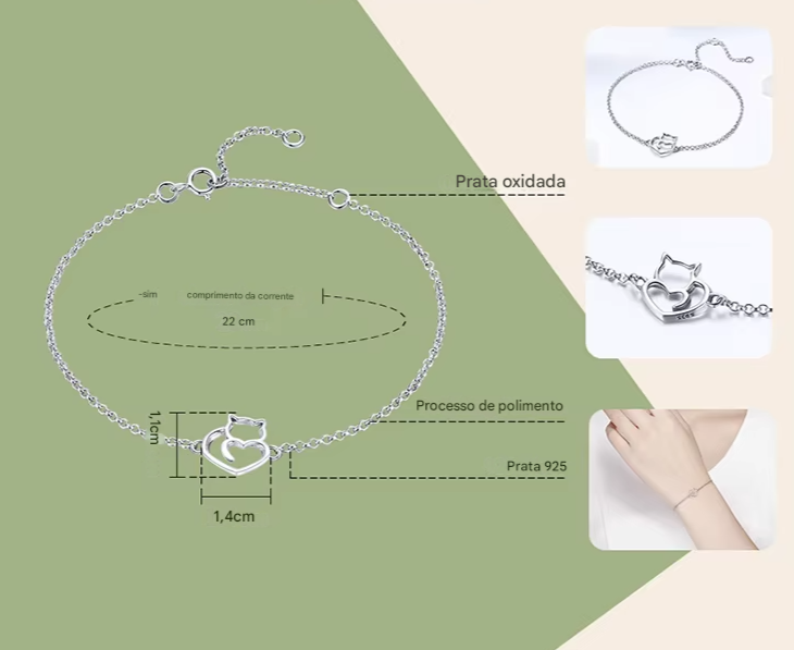 Pulseira Cat em prata 925 e banhos, peça perfeita para os amantes de gatinhos!