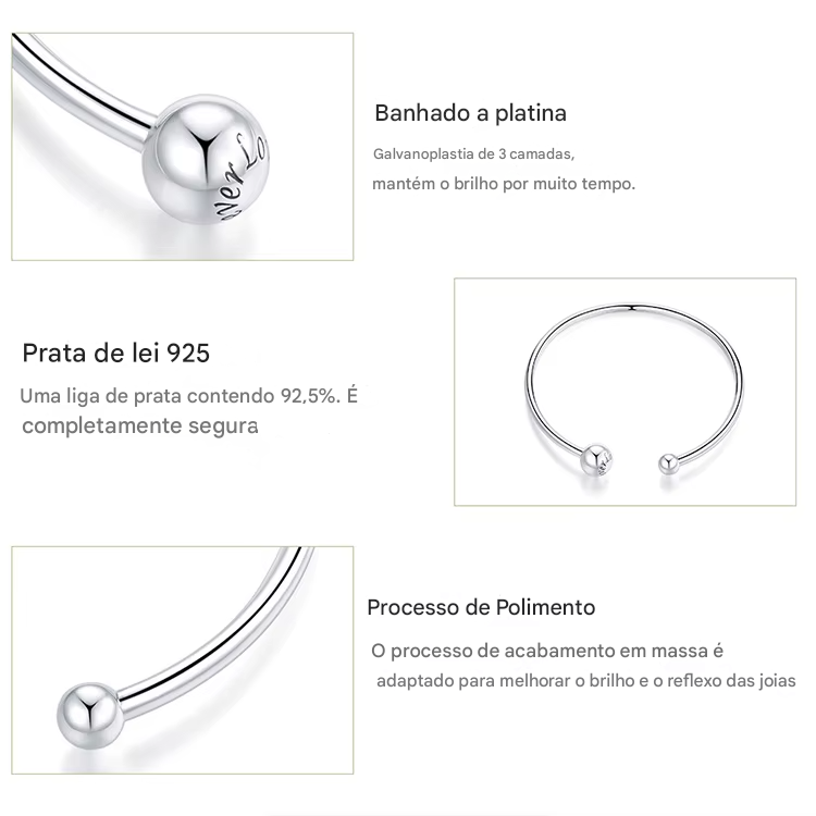 O design simples e inteligente desta pulseira pode ser combinado com pingentes ou berloques diferentes para criar a joia que conta sua história.