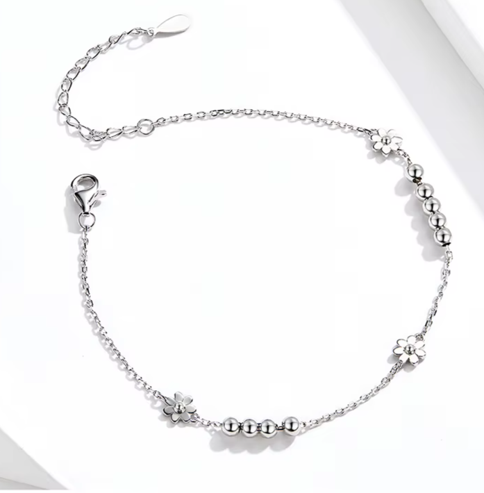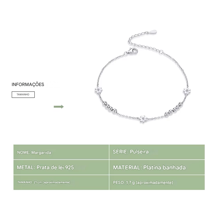 Pulseira Margarida flor, em prata 925 e esmaltação de alta qualidade, em uma peça que representa a beleza da natureza e a doçura da infância!